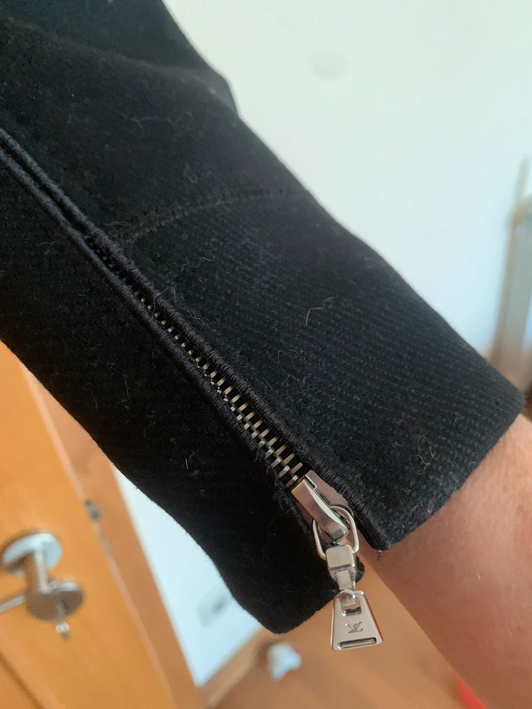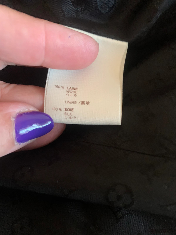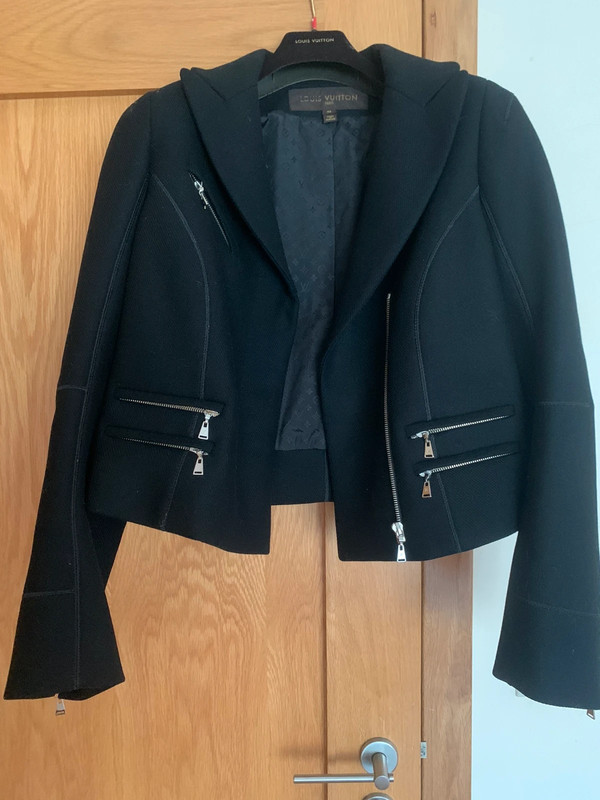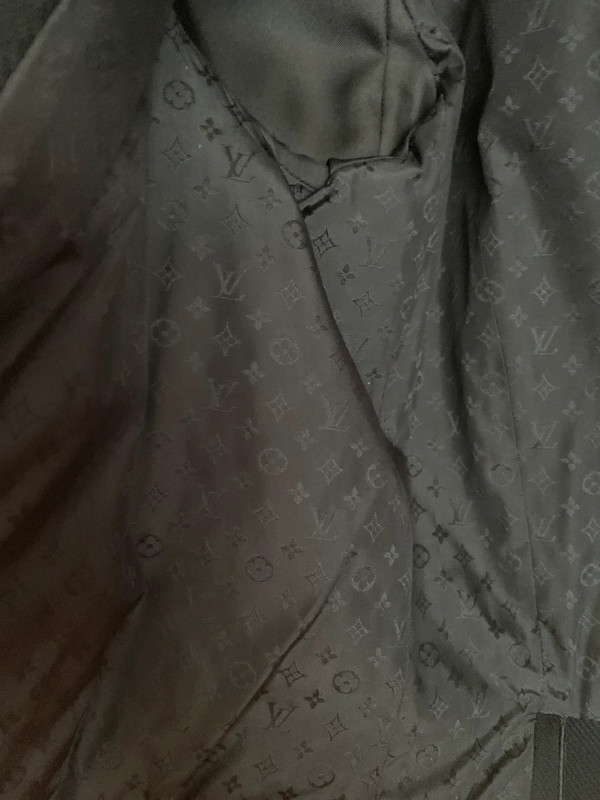 The jacket features the famous Louis Vuitton monogram throughout the silk lining.