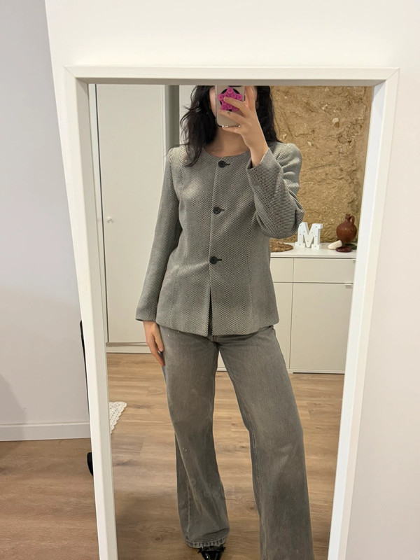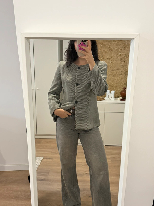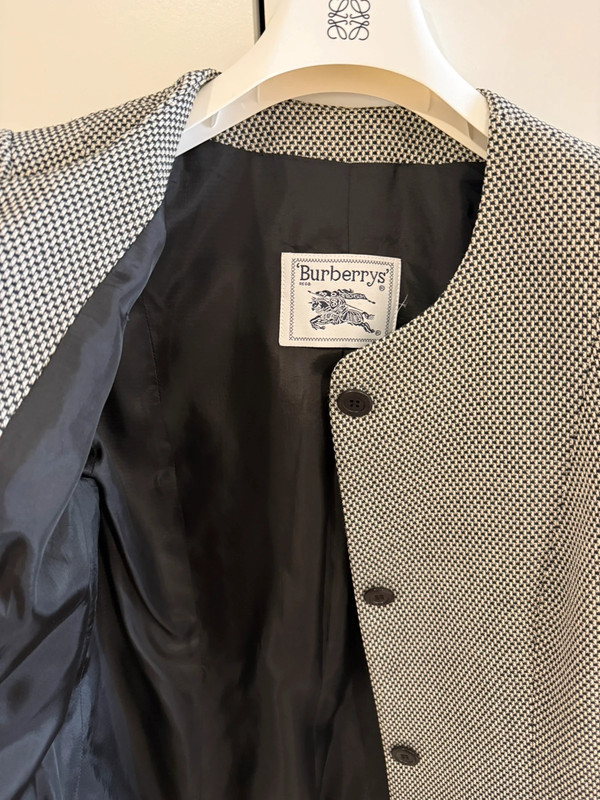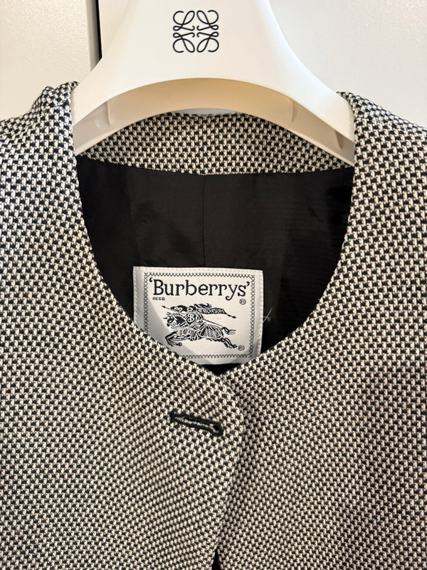 Vintage Burberry jacket with shoulder pads. Size medium but also fits a size small. For reference, I wear a size 36/38.