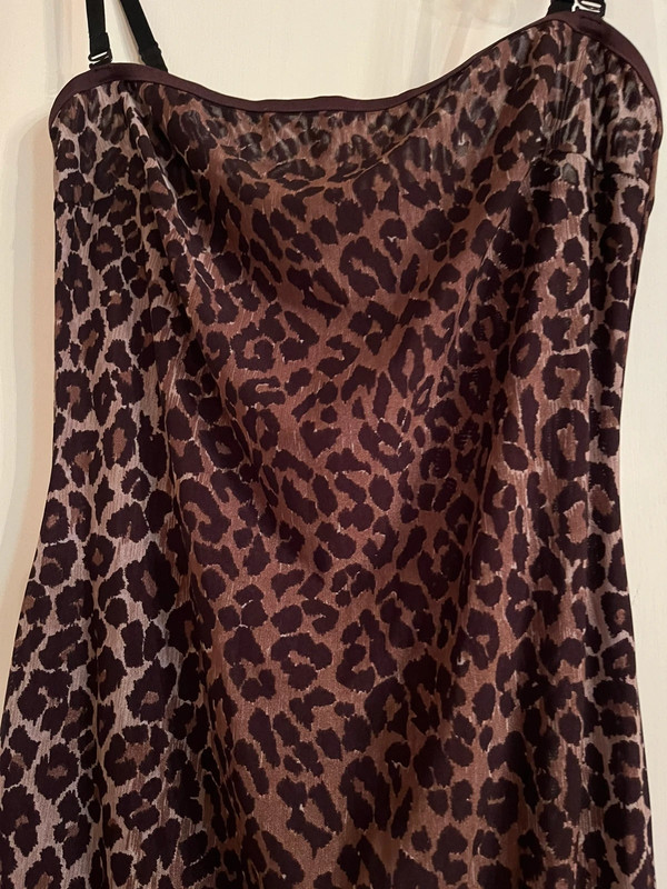 Fitted stretch classic animal print top from Dolce Mare. Adjustable straps. Lined and very slimming silhouette. Size 38 Italian (no tag) with side slit. Length from shoulder strap 90cm. Bust 38cm. Best quality. Made in Italy. Never worn.