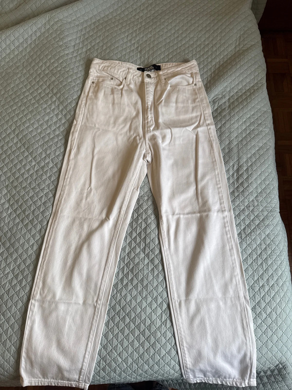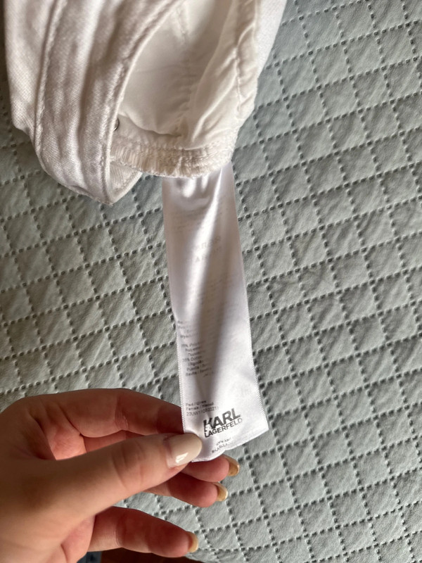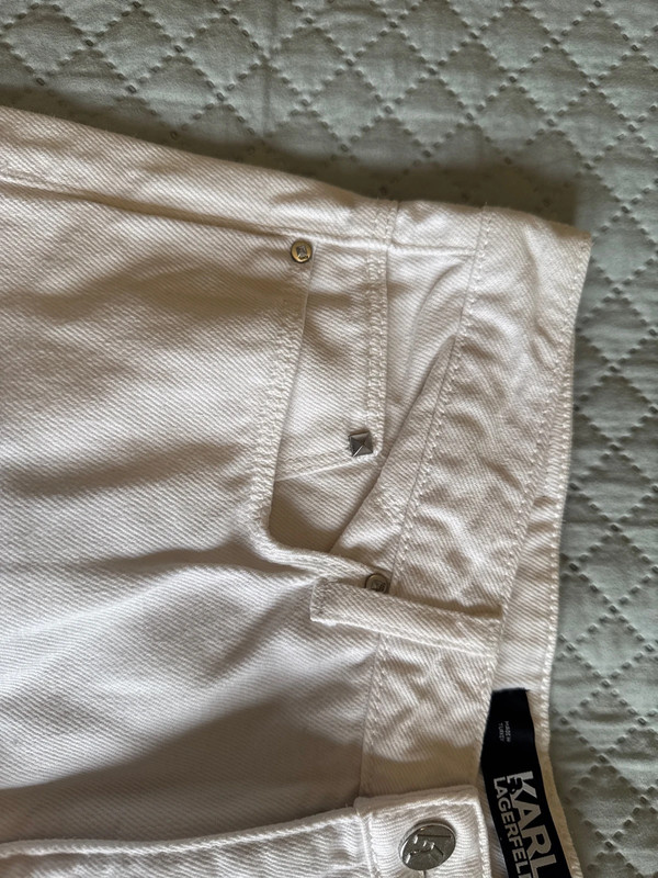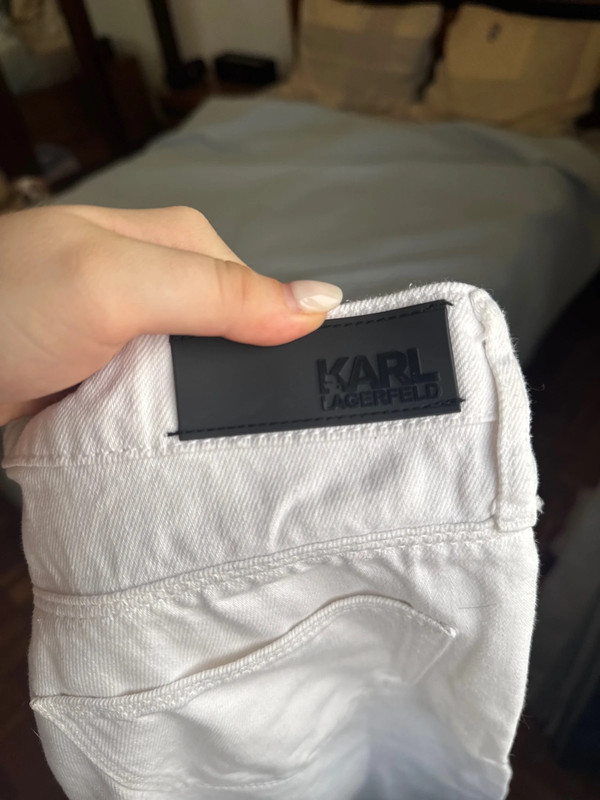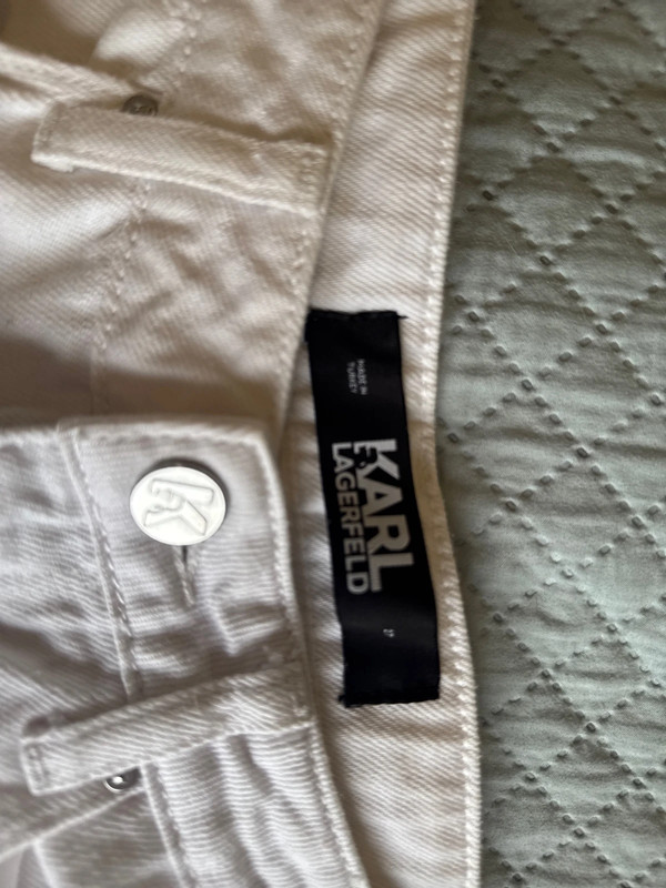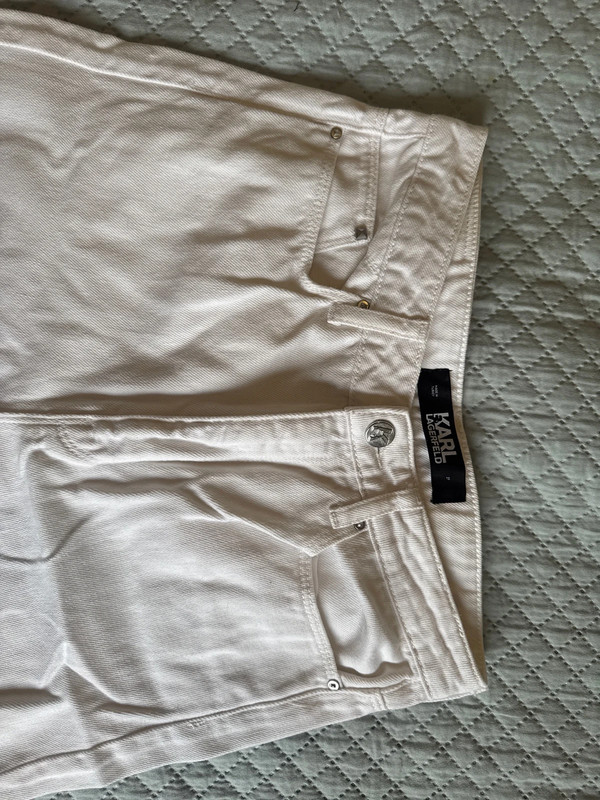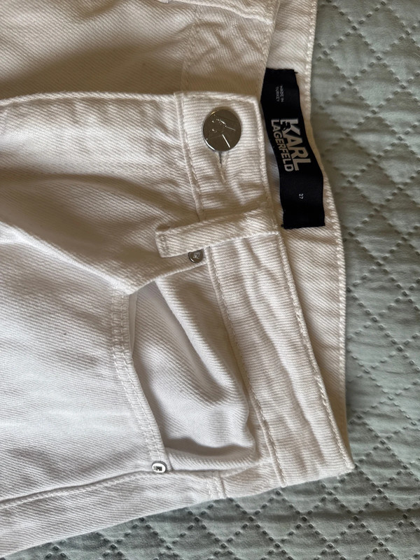 White women’s trousers from the brand Karl Lagerfeld in size 27 (approximately a 36).