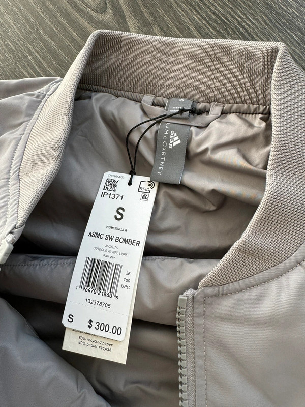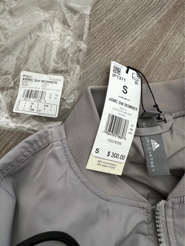 This trendy bomber jacket from Adidas in collaboration with Stella McCartney is brand new with tags. Size S, but quite big (loose fit), so M is also possible. Made from recycled polyester. Purchased in the US, but decided to go for a smaller size. Original price was $299 without tax. #Stella McCartney #Adidas #new #bomber jacket