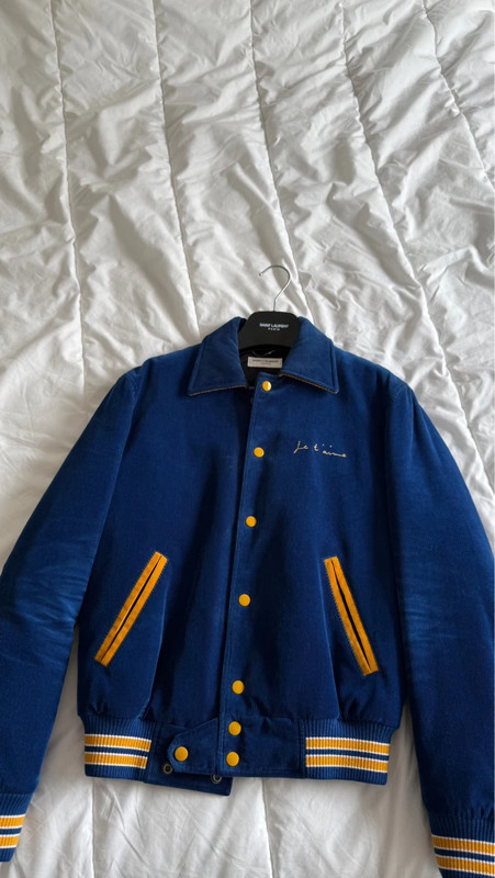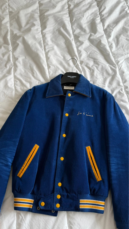 Saint Laurent Paris Je T’aime Corduroy Royal Blue dress.