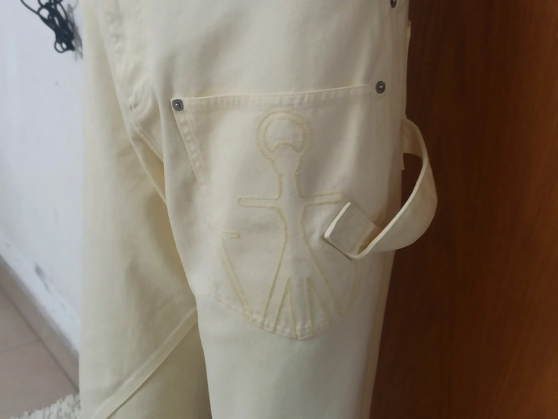 Нові, без бирки з розміром, з невеликим дефектом на нозі (поруч з швом між ногами) з обхватом талії 44 см