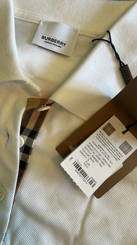Біла поло Burberry Equestrian з деталями монограми.