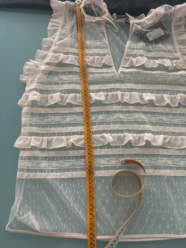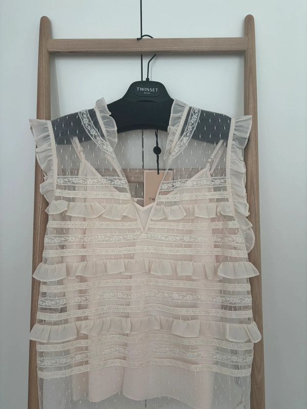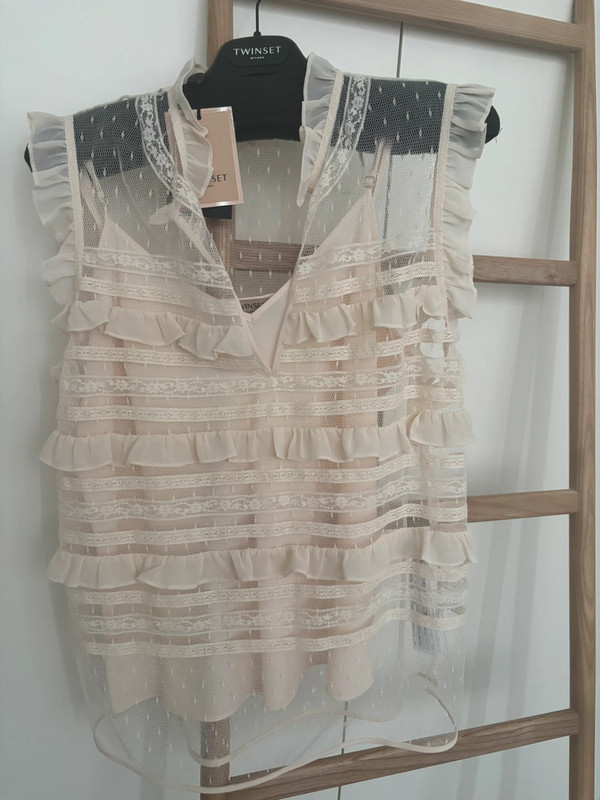 Прекрасний топ з плуметісом, тюлем і мереживом, який я купила, коли була трохи важчою… він все ще має бірки.
