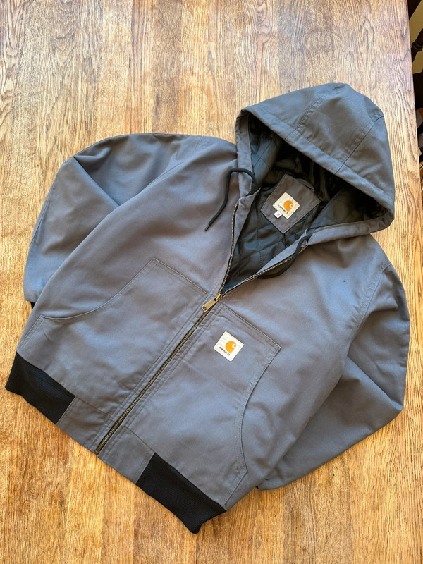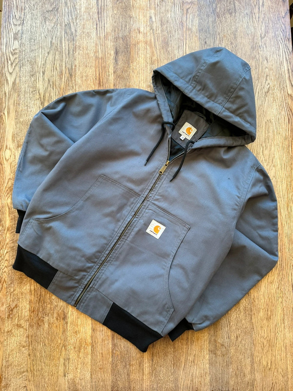 Вінтажна сіра куртка Carhartt Active з капюшоном та стегнутим підкладанням – класика міцного робочого одягу🎴