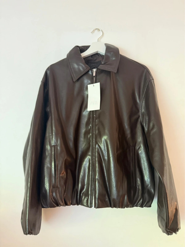 Коричнева бомбер-куртка з ефектом штучного хутра від Zara.