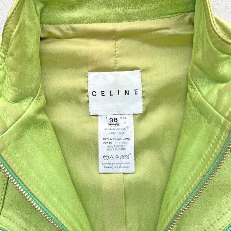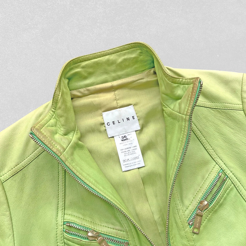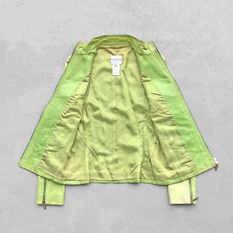 #celine #celineleatherjacket #leatherjacket #celinejacket #limegreen #celineouterwear #femme #femmeleatherjacket #vintageleatherjacket #fashionarchive #archivalclothing #phoebephiloera #designerleatherjacket #motojacket #vintagemotojacket #designerbikerjacket #tightfit #highfashion #luxuryvintage #vintagelovers #genuineleather