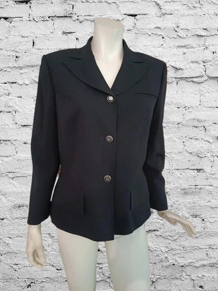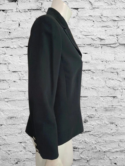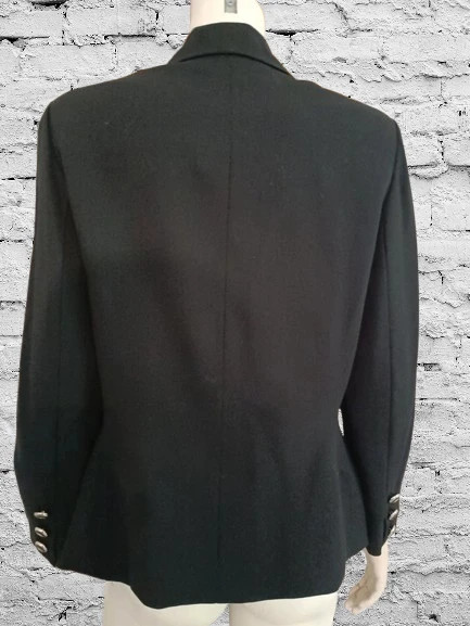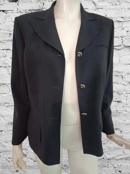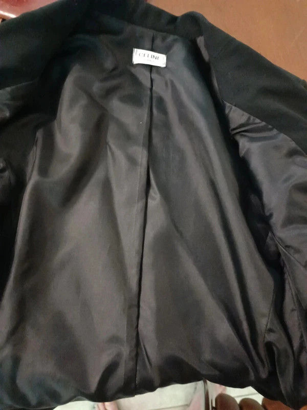 Легка чорна куртка від Céline, елегантна та автентична, не в ідеальному стані (відсутня бирка зі складу), гарна на кнопках. Підкладка. Розмір 40. Довжина: 62 см. Від пахви до пахви: 52 см. Талія: 48 см. Маленькі вбудовані наплічники.
