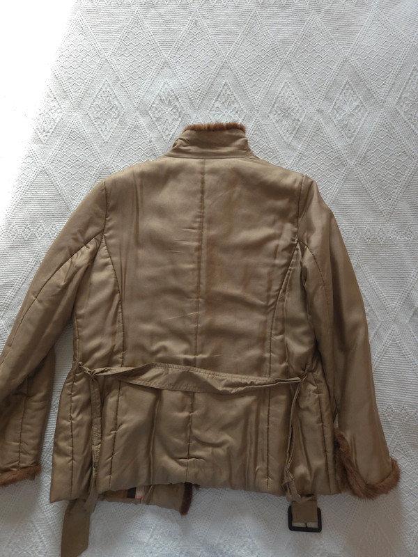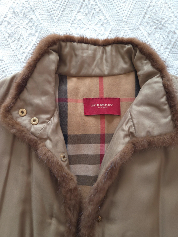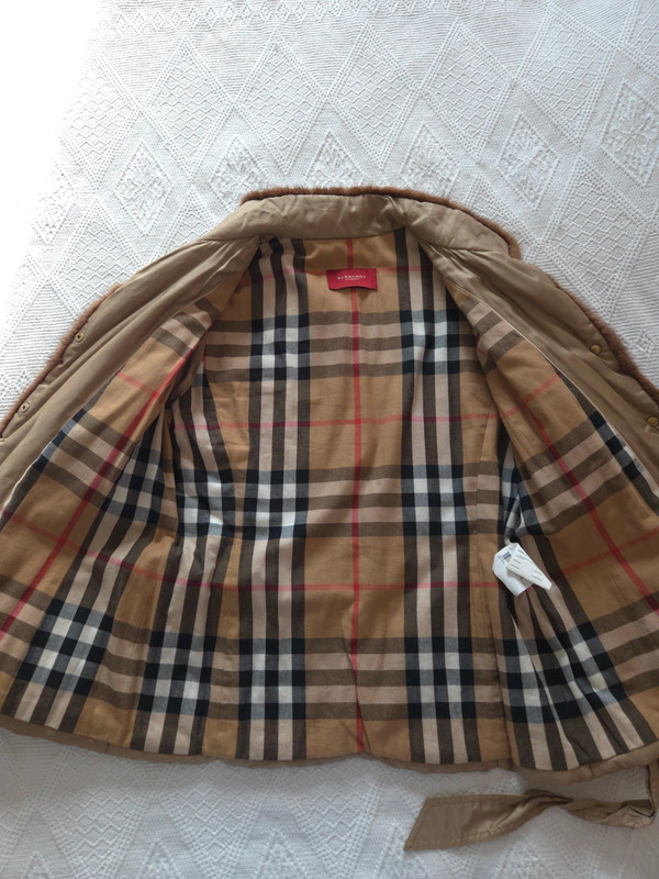 Оригінальний пуховик Burberry Brit у бежевому кольорі з ворітником і обробкою з бура шерсті. Внутрішня підкладка з іконічним клітковим принтом Nova Check від бренду. Деталі: Лінія Burberry Brit (червона бірка), Застібається на кнопки та пояс з пряжкою, 2 передні кишені та 1 верхня кишеня, Внутрішній класичний принт Burberry, Оригінальні внутрішні бірки з референтним кодом, Є деякі сліди використання