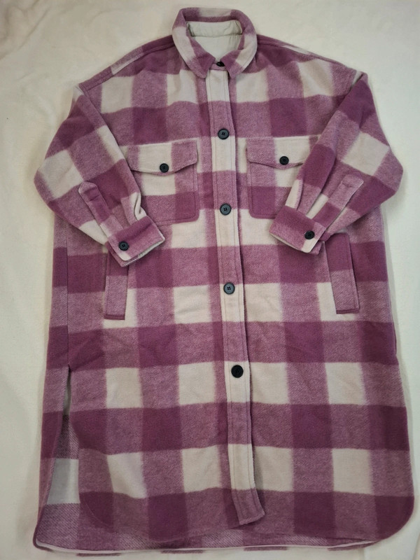 Рожеве кліткове вовняне пальто. Класичний комір. Застібається на ґудзики. Подвійні кишені з клапанами та ґудзиками. Бічні кишені. З підкладкою. Жіноча колекція Осінь/Зима 2021-22 від Etoile Isabel Marant. Інспіровано Etoile Isabel Marant