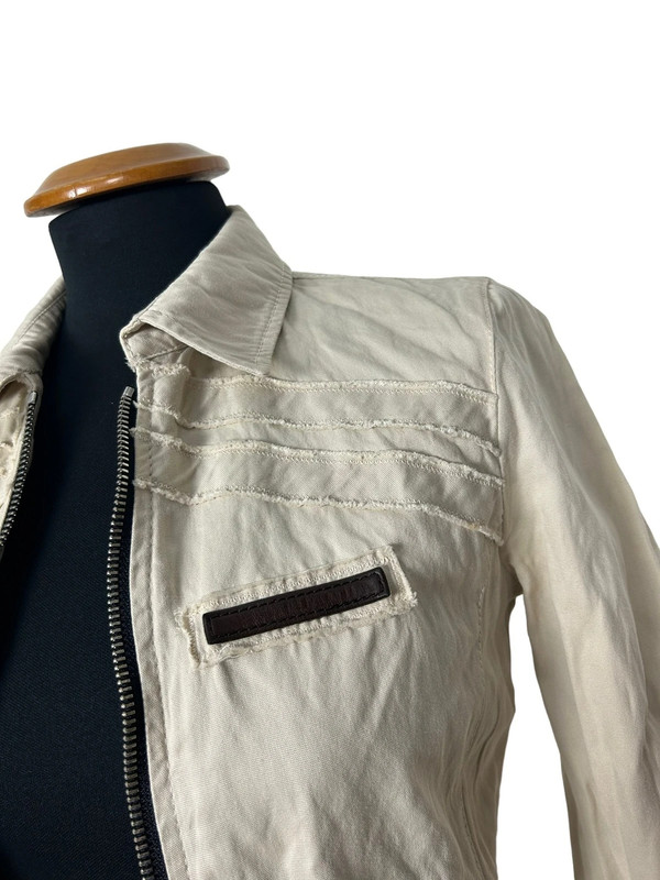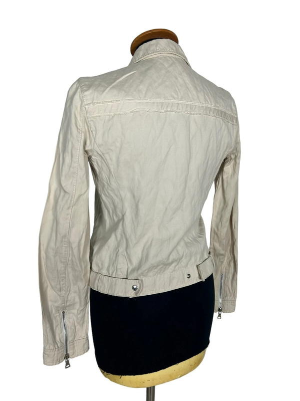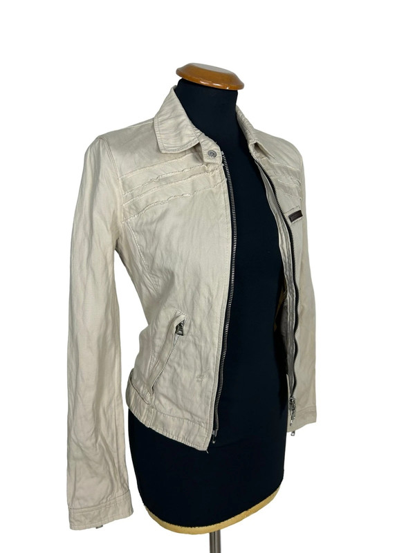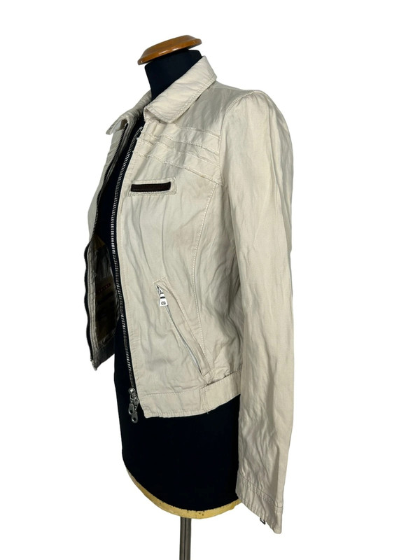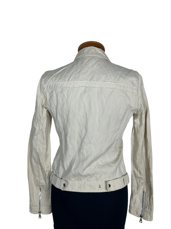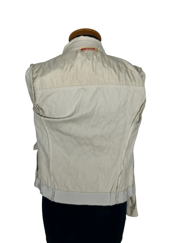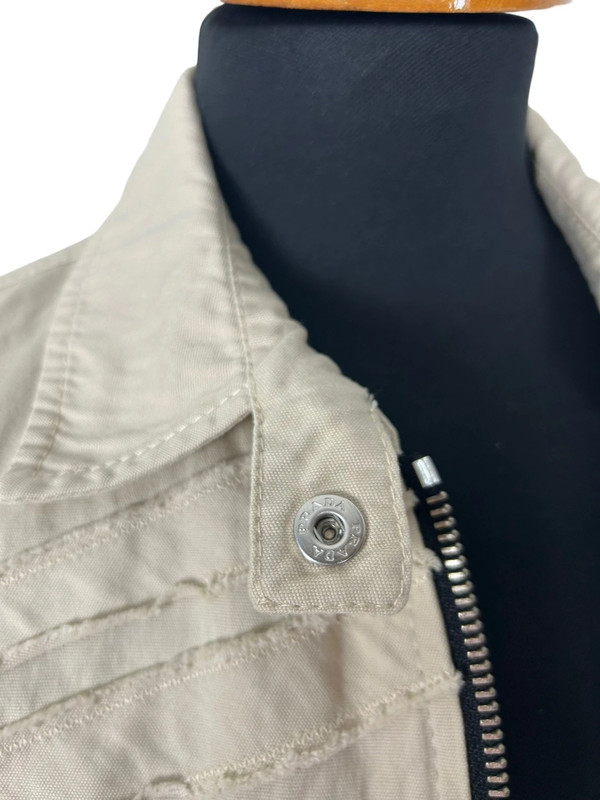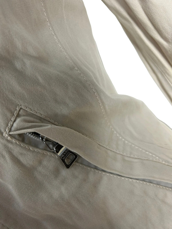 Жіночий пальто Prada, бежевого кольору, розмір 34. Має елегантний і вічний дизайн. – Модель з блискавкою. – Деталі зі стежками. – Кишені на блискавці. – Легка та зручна тканина. У гарному стані.