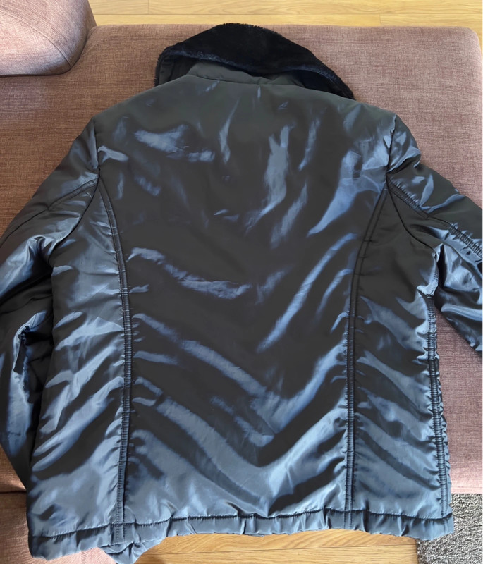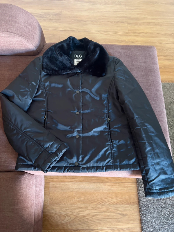 Чорна стьобана куртка з хутряним коміром (не з животного волосся)