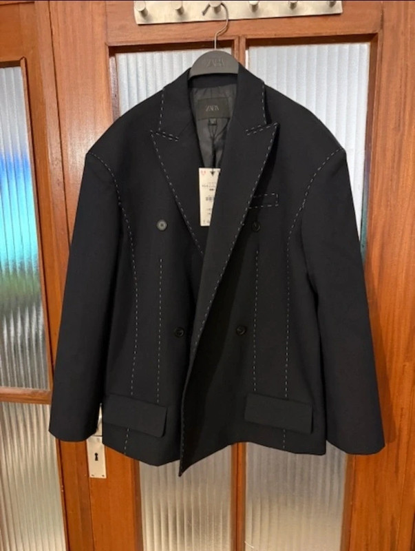 Оверсайзовий блейзер з великим воротом, лацканами та довгими рукавами з наплічниками. Кишені з клапанами на передній частині та обшиті на грудях. Деталь з контрастним поєднанням строчок. Внутрішня підкладка. Застібається на перехрещені ґудзики спереду. Синя-морська | 1255/774/422 1255/774 Розмір XS/S Вірусний Tiktok Швидка доставка #zaraviral #viralontiktok #viraltiktok #viral #viralzara #viralzaradress #viralzarajacket #zaraviraljacket #viralzara #zaratiktok #zaratiktokviral #zaratiktokviraldress #zaratiktokdress #tiktokzara #tiktokzaradress #tiktok #tiktoktrend #zara #zarawoman #tiktokzaraviral
