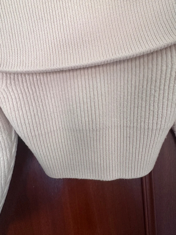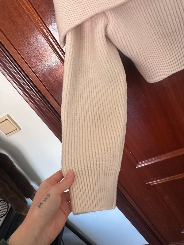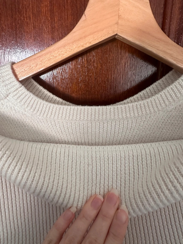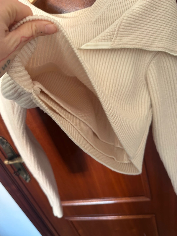 Є певні сліди зношування через природу матеріалу, трохи пожовтіння на внутрішній бирці, як видно на фото