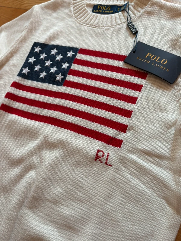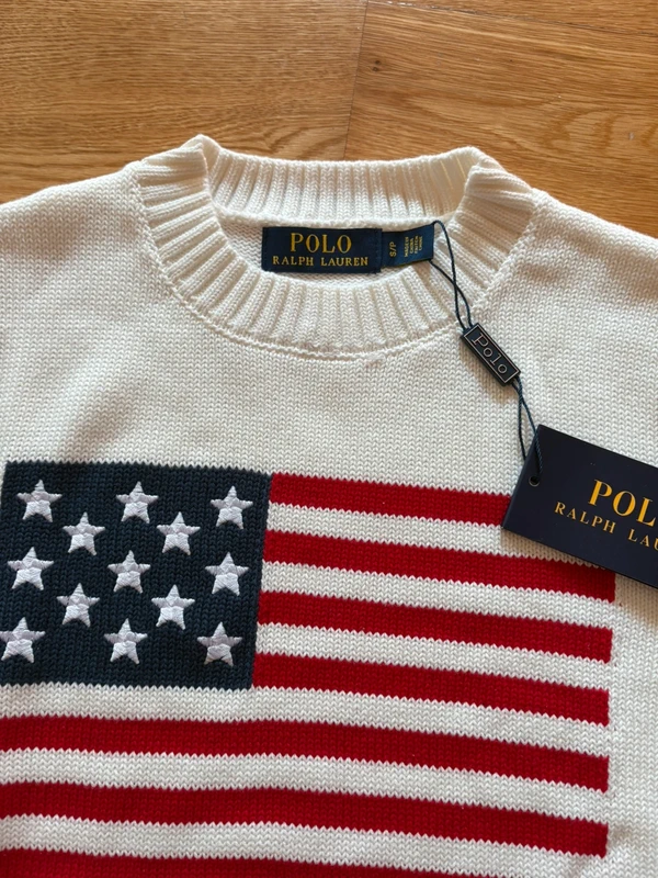 Класичний в’язаний светр з бавовни від Polo Ralph Lauren з іконічним американським прапором на передній частині. Доставка за 48 годин 🚚 Стан 9/10 ✅