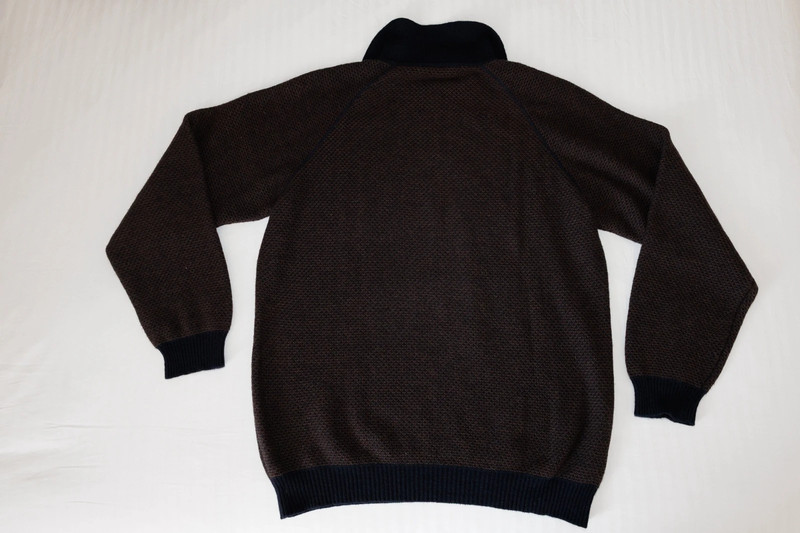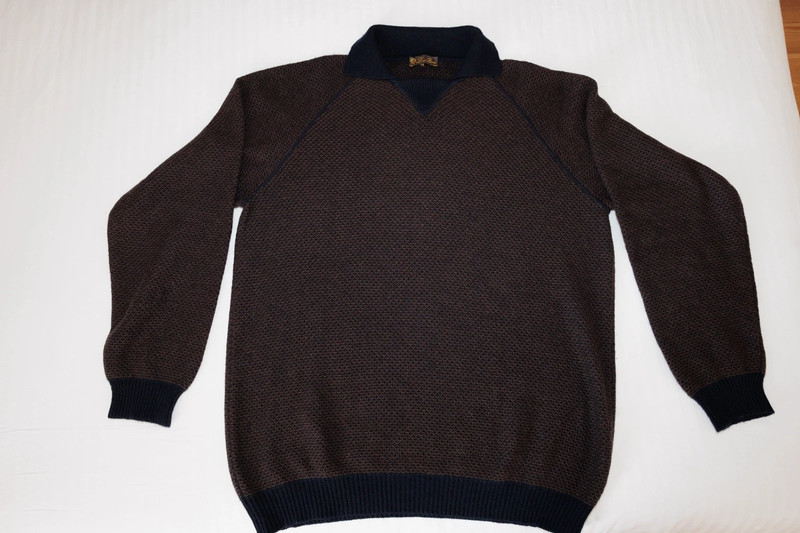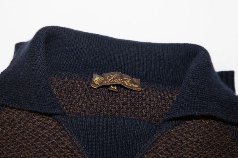 Светр з кашеміру Loro Piana у дуже хорошому стані, з невеликою недоліком на верхній частині спини та рукаві (зображено). Обидва майже непомітні оголеному оком. Прекрасний коричневий колір з морськими деталями на комірі та ребрах. Розмір IT 54, приблизно XL. 100% кашемір, виготовлено в Італії.