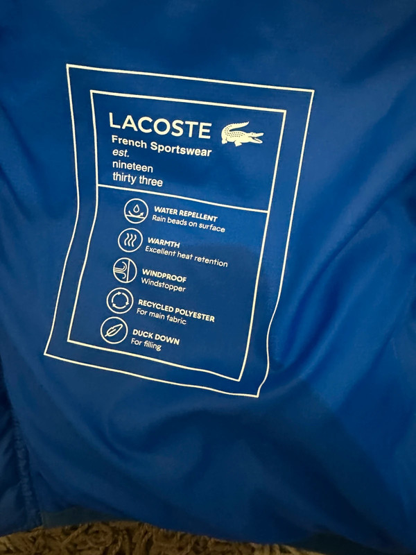Lacoste, 100% оригінал. Розмір: xs/s. Колір: Синій. Унісекс модель. Дуже теплий і легкий. З бічними кишенями. Вишитий логотип Lacoste на грудях.