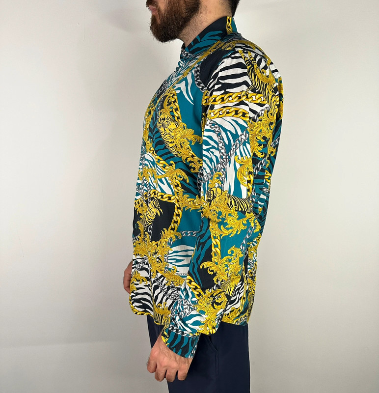 Особа на фото зазвичай носить розмір М, але сорочка пасує на розмір L.