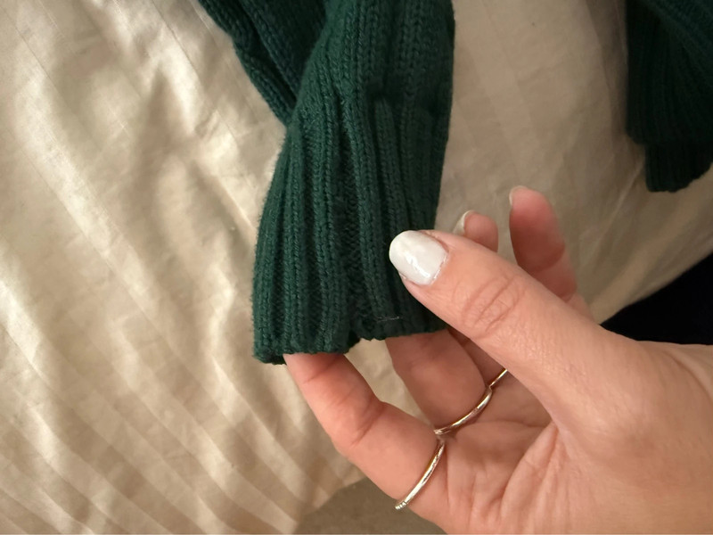 V-подібний виріз, виготовлений з бавовни. Була одягнута лише 1 раз протягом 2 годин. Продаю, оскільки купила без примірки і виявилось тісно, відразу вирізала бирку, тому не можу повернути. Рукав трохи розшитий (тому була продана за ціною аутлету).