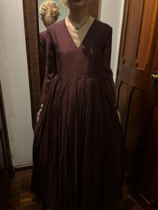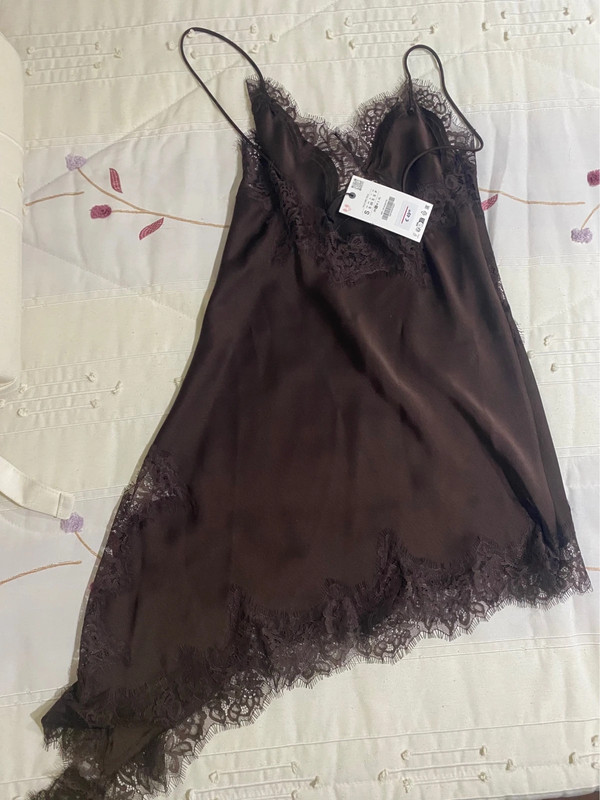 Сукня або блуза до підлоги з атласу кольору каштанового з деталями з мережива Розмір S