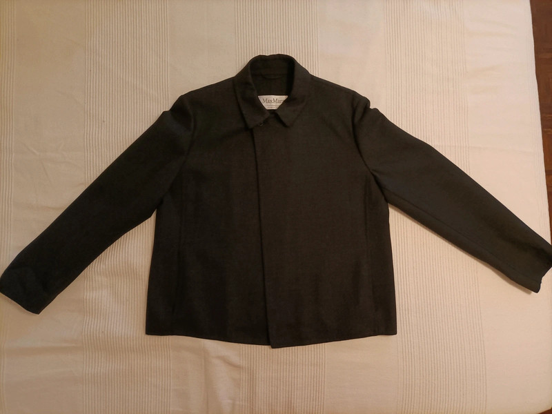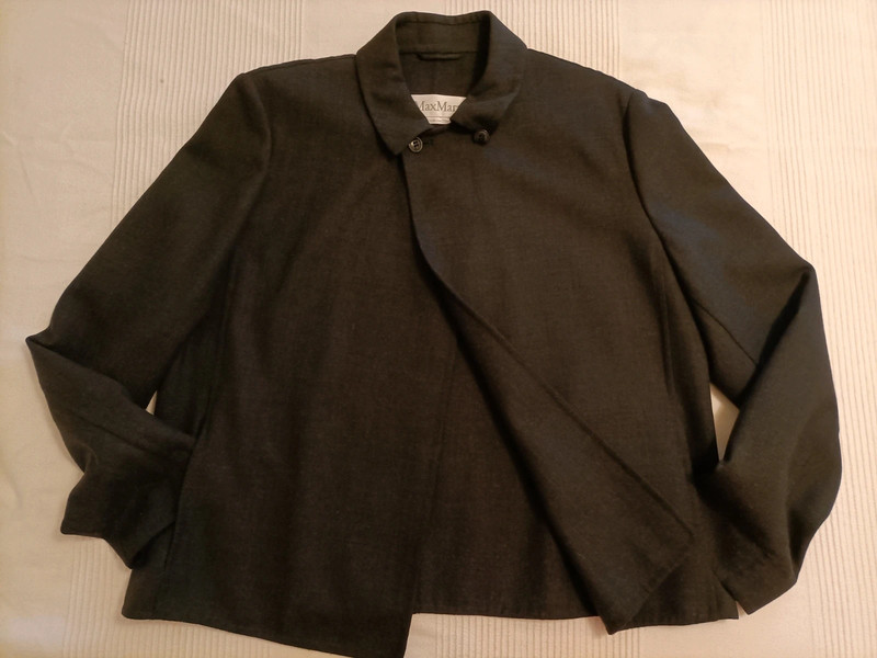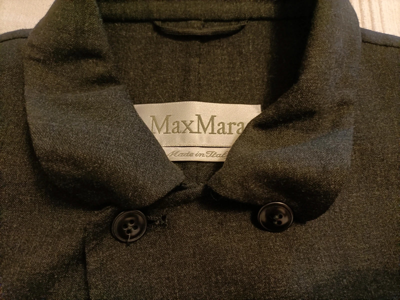 Пальтово-плаття з шерсті темно-сірого / антрацитового кольору від Max Mara. Елегантний і класичний крій. Був вдягнутий 2 рази на офіційних заходах і дуже цінується. Пальто має оригінальні ґудзики біля комірця.
