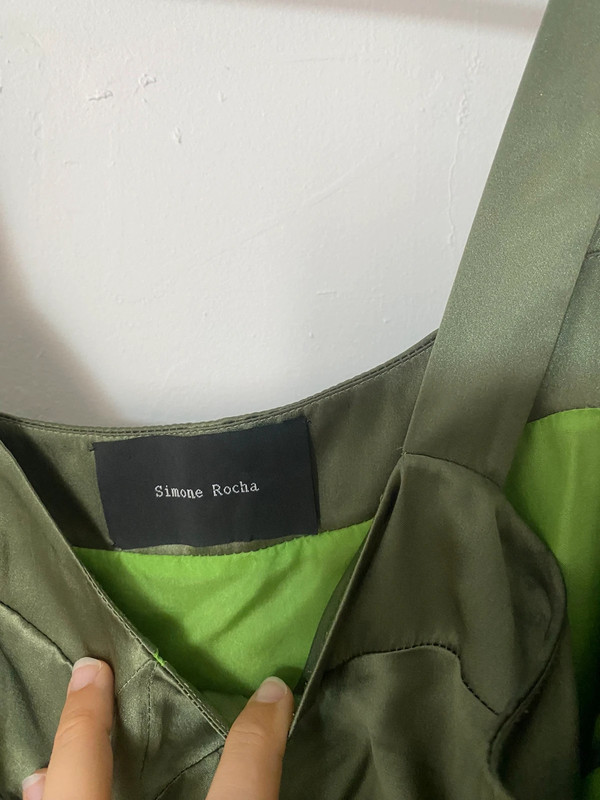 Зелене шовкове плаття Simone Rocha. Розмір UK 12, що відповідає розміру M-L. Я ношу XS, але використовувала б його у великому розмірі. Ідеальний стан, лише потребує хімчистки, оскільки я нещодавно його використовувала.