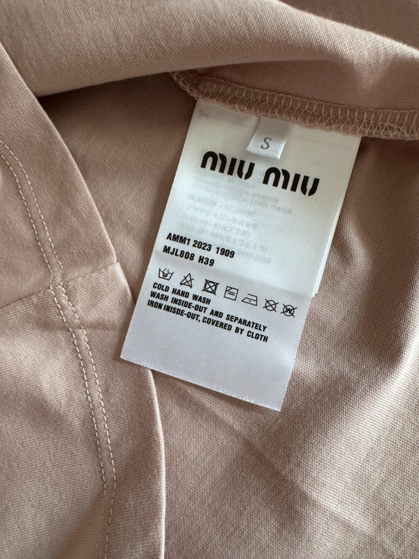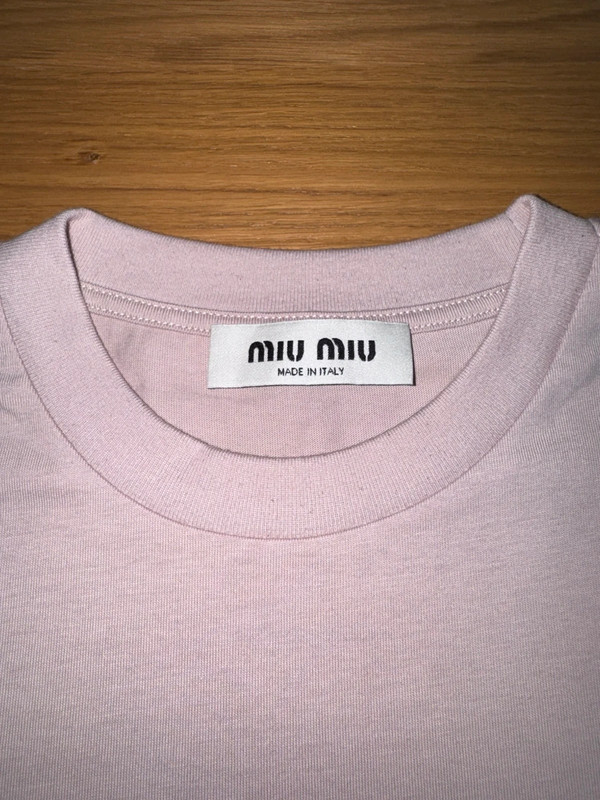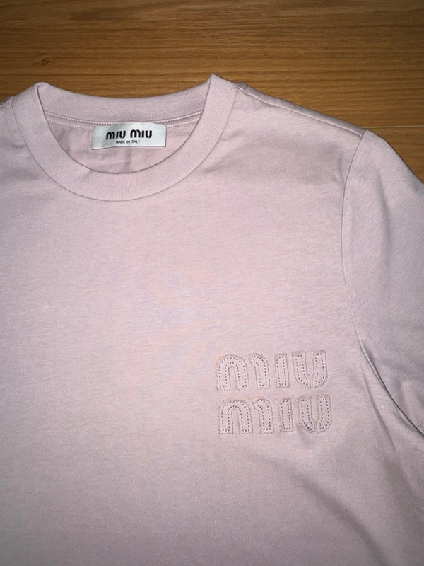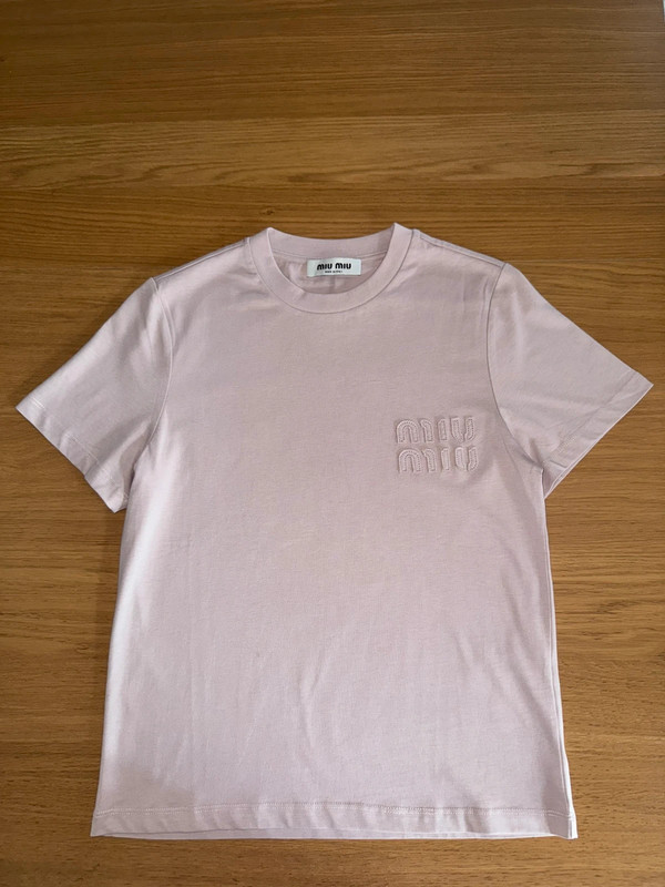 Елегантна жіноча футболка Miu Miu ніжного блідо-рожевого кольору.