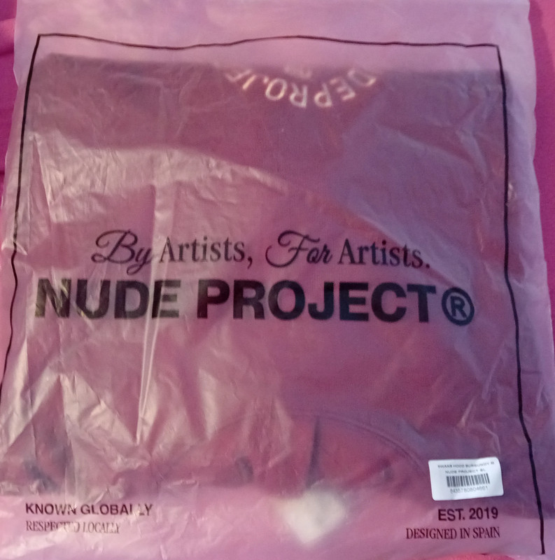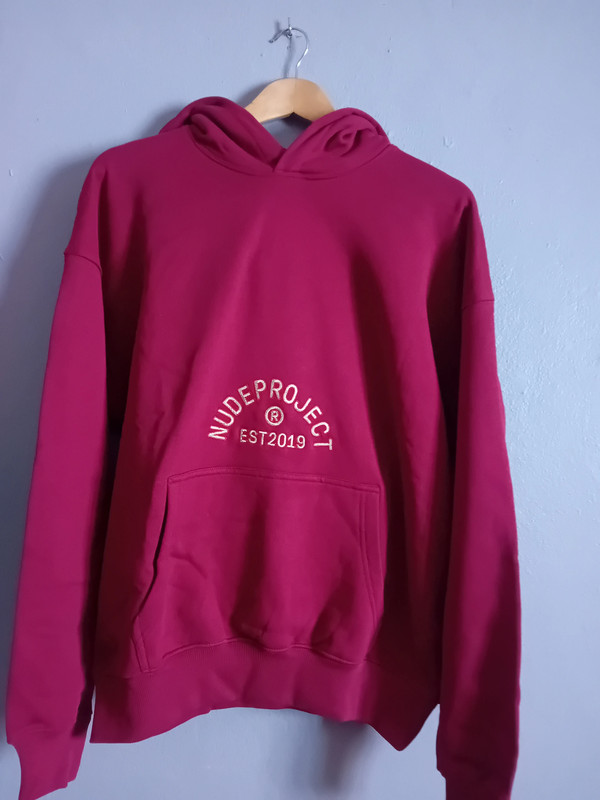 Худі з капюшоном NUDE PROJECT. Унісекс. Розмір M у відтінку бордо. Нова з біркою. Склад: 100% бавовна. Перед: Регулярна вишивка. Ззаду: Вишивка, Вишивка 3D, Велюрові аплікації, Фетрові аплікації з ланцюжковим стібком. Кишеня-кенгуру спереду.