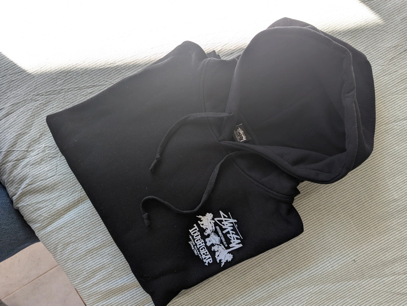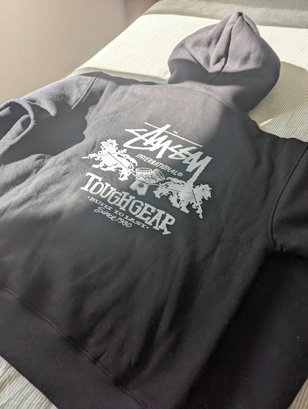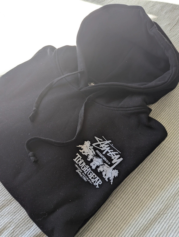 Чорна толстовка від бренду Stüssy, модель Tough Gear – Built to Last. Розмір: L (унісекс) Колір: чорний з білим принтом спереду та ззаду Стан: Як нова, була використана лише 1-2 рази, без дефектів або слідів зношення Дуже зручна та відмінної якості 👉 Ідеально підходить для поціновувачів стрітвіру та тих, хто шукає універсальний та довговічний одяг.