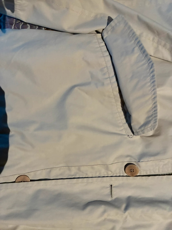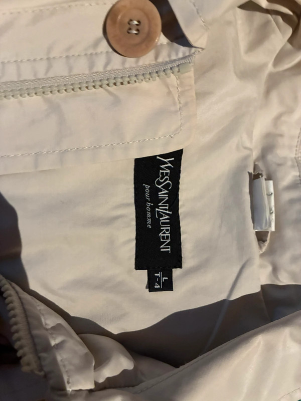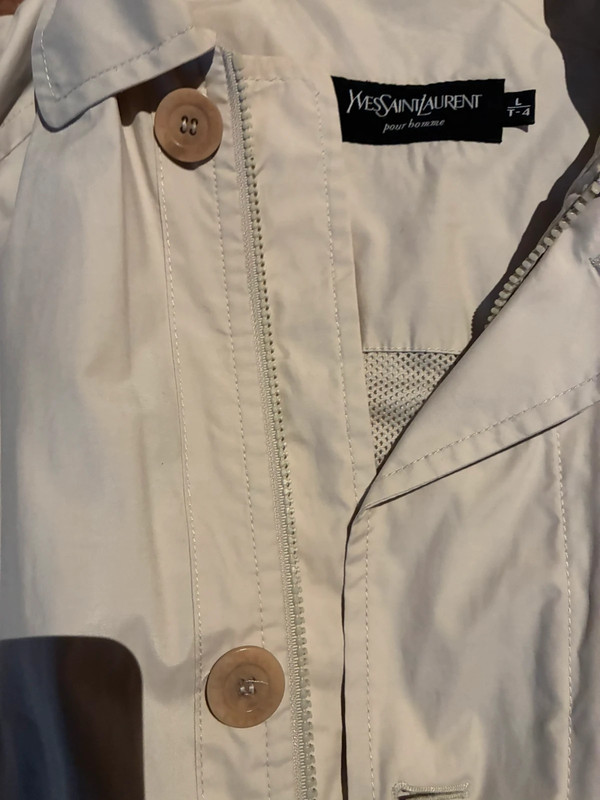 Елегантний пальто від Yves Saint Laurent у бежевому кольорі. Класичний дизайн з кнопками та блискавкою. Передні кишені. Висока стійка. Внутрішні кишені.