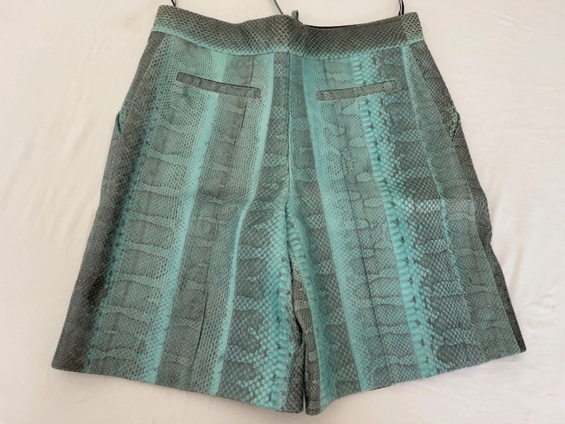 Дуже красиві та ексклюзивні, єдині у своєму роді, шорти зі справжньої зміїної шкіри від LOUIS VUITTON. Виготовлено лише 1 пару, спеціально для одного модного показу, багато років тому, справжній унікальний предмет для колекціонерів. Були вдягнуті лише 1 раз, немає бирки з розміром, оскільки вони були зроблені на замовлення, на замовлення для цього показу. Приблизний розмір IT 40-42. Будь ласка, перевірте виміри, щоб переконатися, що вони вам підійдуть. Якщо вам потрібні додаткові виміри, не соромтеся запитати.
