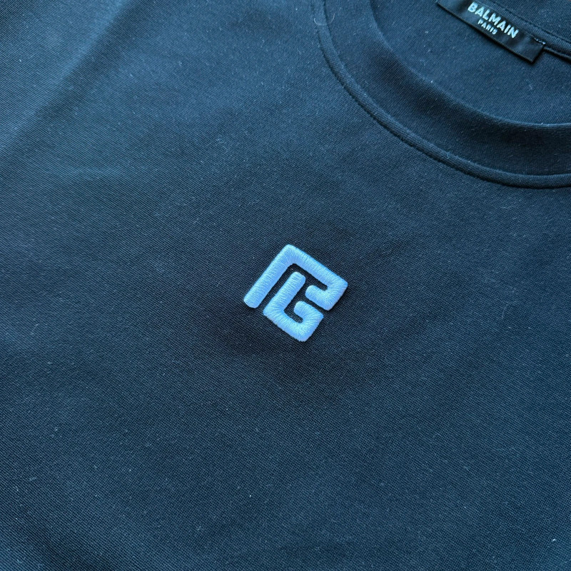 Balmain чорна футболка з розслабленим кроєм та вишитим логотипом спереду розмір XS
