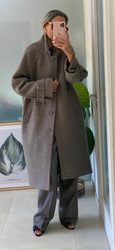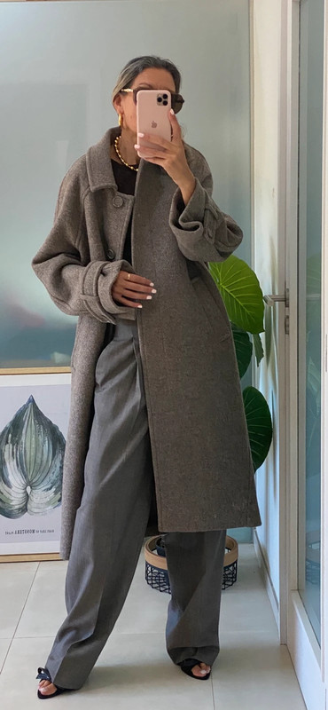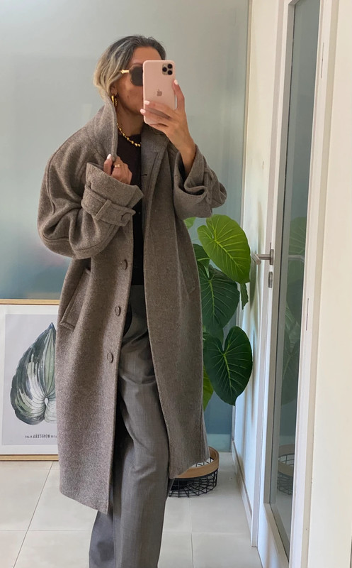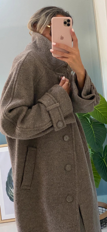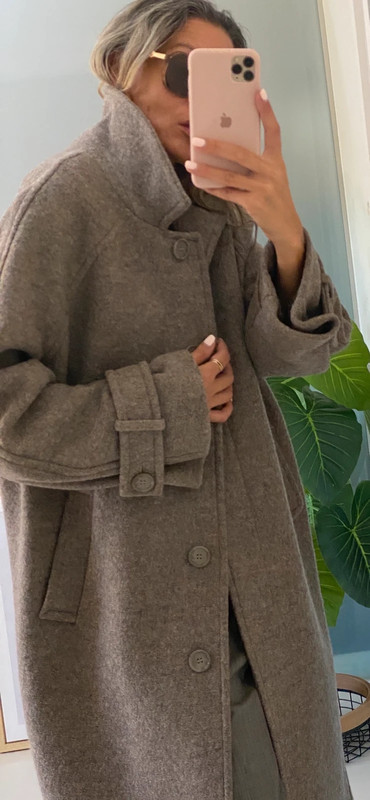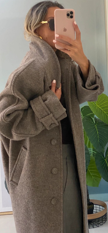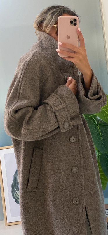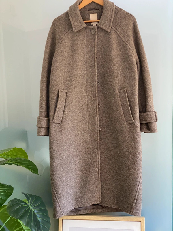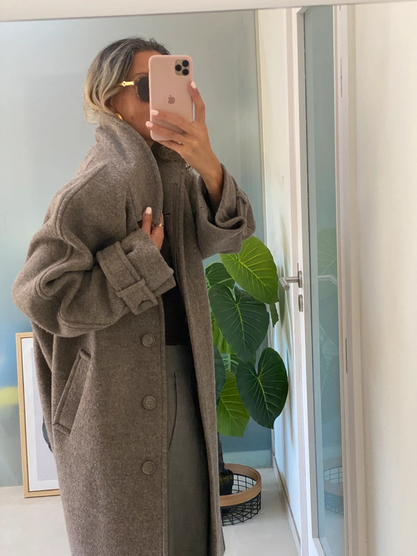 H&M – пальто оверсайз вищої якості з 100% шерсті, бічні кишені, деталі з петельками на рукавах та гудзиками, застібається на приховані гудзики посередині, було використано лише на декілька моментів, як нове! Колір тауп! Придбано за 279 євро