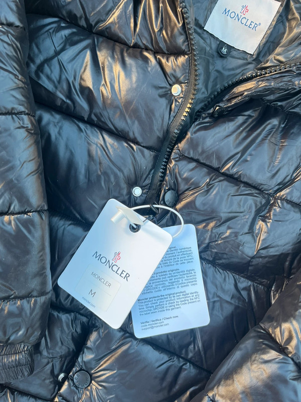 Класичний чорний пуховик Moncler, розмір M. Предмет 100% оригінальний, абсолютно новий і з гарантією перевірки / автентичності від Vinted. Ідеально підходить для тих, хто шукає стиль та преміум комфорт цієї зими. 🖤