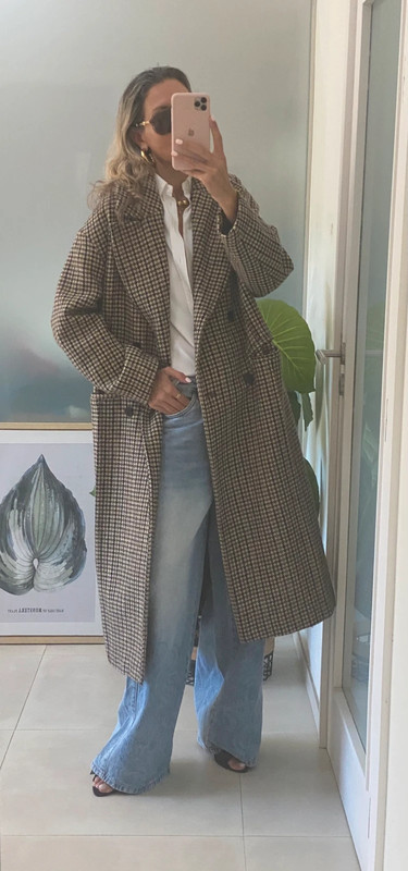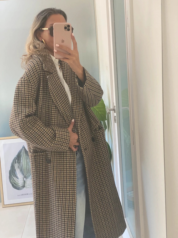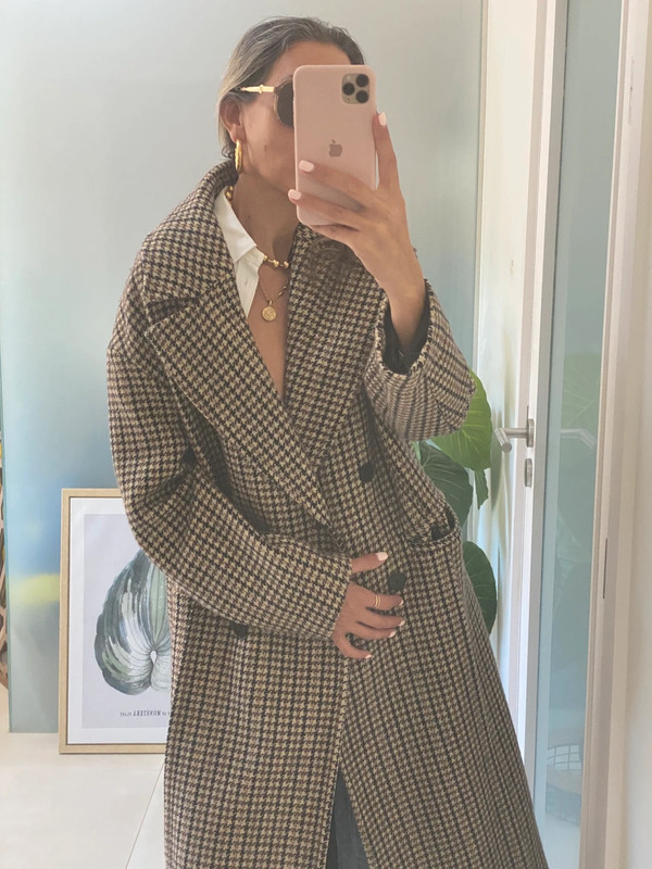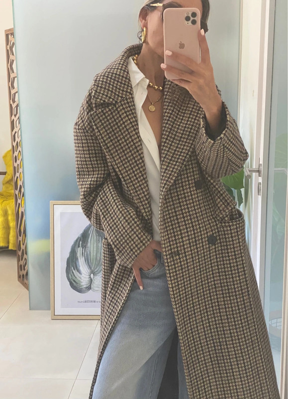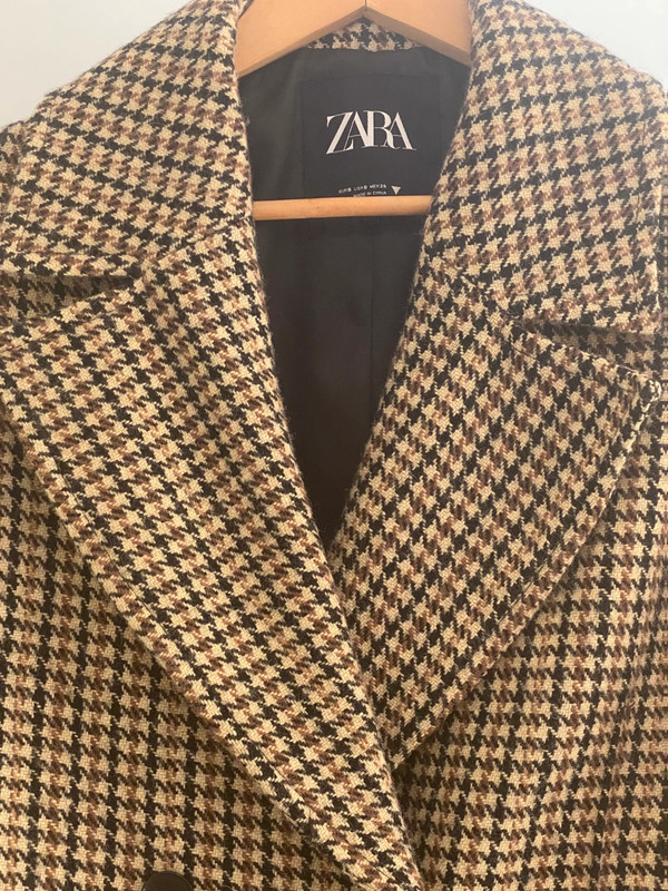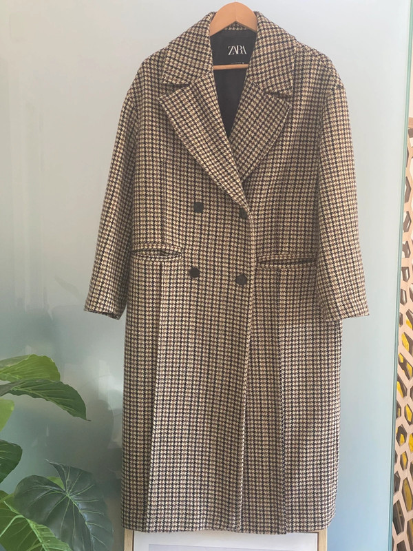 Zara – пальто оверсайз у клітинку в бежевих, коричневих та трохи зелених відтінках, одягнуте 1 раз! Великолепне