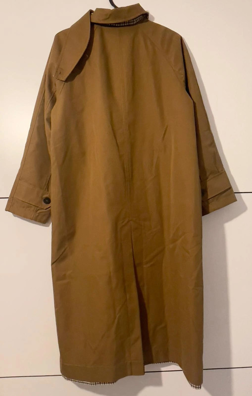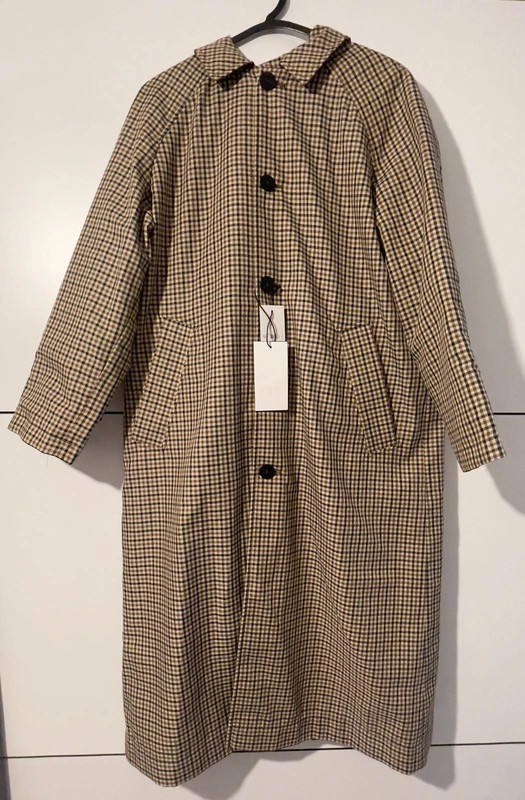 Реверсивний тренч з відкладним коміром, лацканами і регульованими довгими рукавами на застібці з ґудзиком. Кишені спереду. Прямі краї. Застібається на ґудзики спереду.
